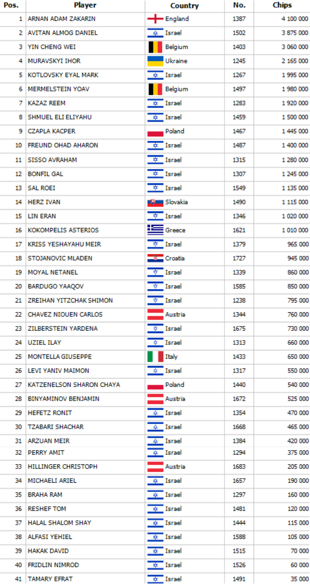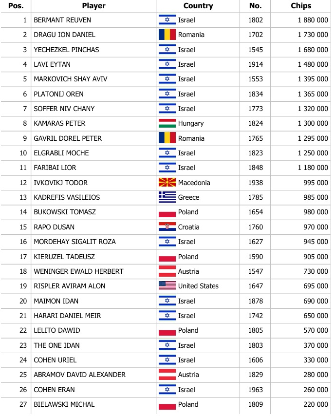 Israeli Federation Cup Main Event 250.000€ GTD – 1I: