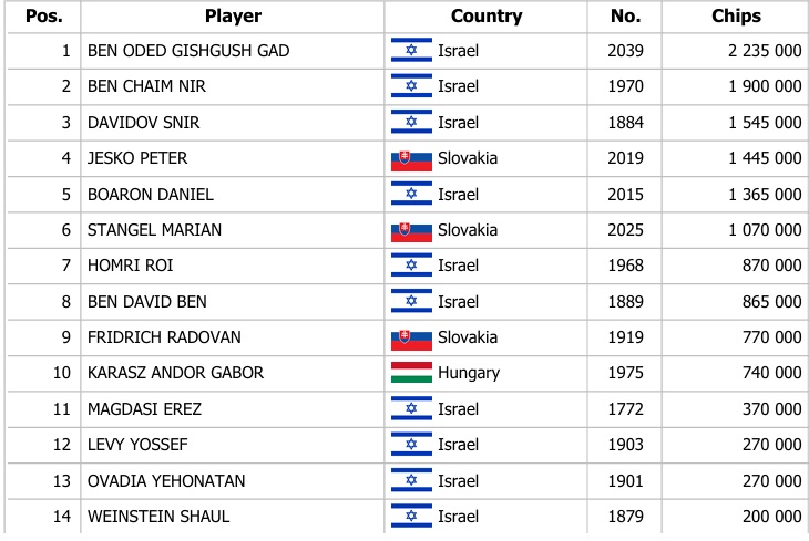 Israeli Federation Cup Main Event 250.000€ GTD – 1H: