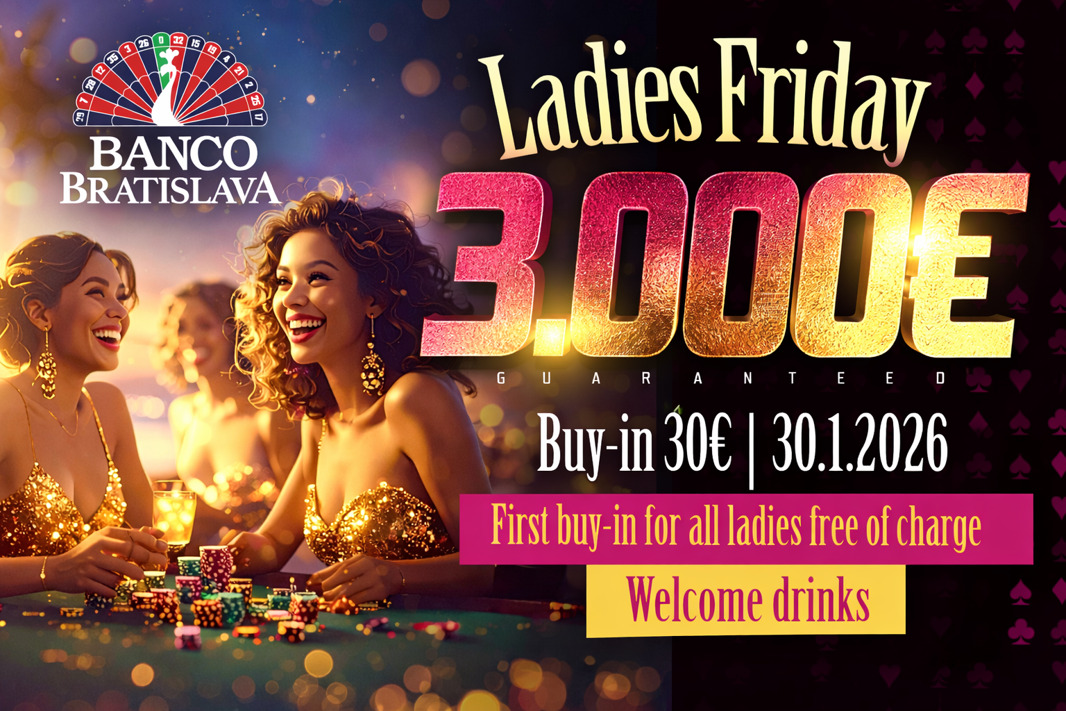 Banco Bratislava už tento víkend prinesie dve jednodňovky a to sobotné špeciálne vydanie Ladies Night s GTD 3.000€ a sobota prinesie Super Saturday 10.000€ GTD iba za 50 eurové vstupné!