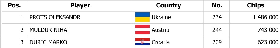 Včerajší deň s označením 1G priniesol 57 entries, z ktorých sa vytvoril 3 členný zoznam postupujúcich do finále a ďalší 6-ti si odniesli po 800€ a 900€ ako min-cash. Dnes a zajtra nás čakajú turbo flighty, v ktorých sa rozhodne o ďalších postupujúcich!
