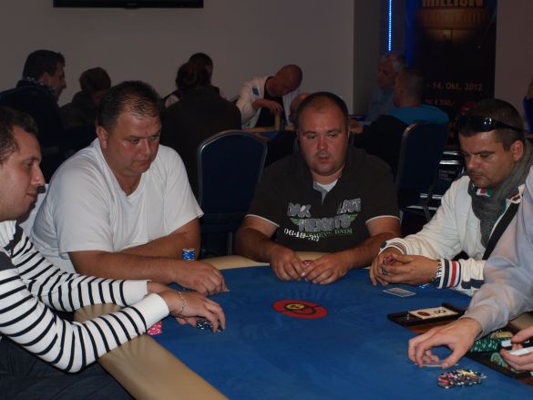 V trojici stacky činili: Démon - 560,000, Ferkan - 450,000 a Mário 240,000. Dlho sa v tomto zložení nehralo. Mário otvoril na 40,000 (BB 20,000), Démon pretočil na 100,000 a dorovnal aj AI s A