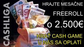 Streda večer patrila freerollu pre cash gameových hráčov, ktorí stále na konci mesiaca organizuje pokrový klub Monte Carlo. Hráči bojovali o čiastku z prizepoolu €2,500. Hráči sa mali možnosť kvalifikovať do freerollu hraním cash gameových hier v Monte Carle. Podrobné informácie ako sa kvalifikovať aj s cennými informáciami nájdete na stránke pokrového klubu Monte Carla.