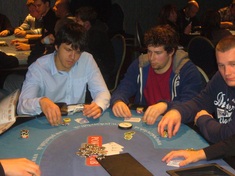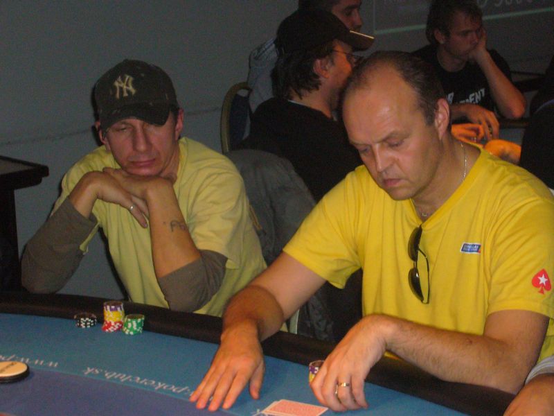 (Vľavo Patrik Molnár a Marián Šestina, ktorý sa snaží ubluffovať flopnutý full house)
