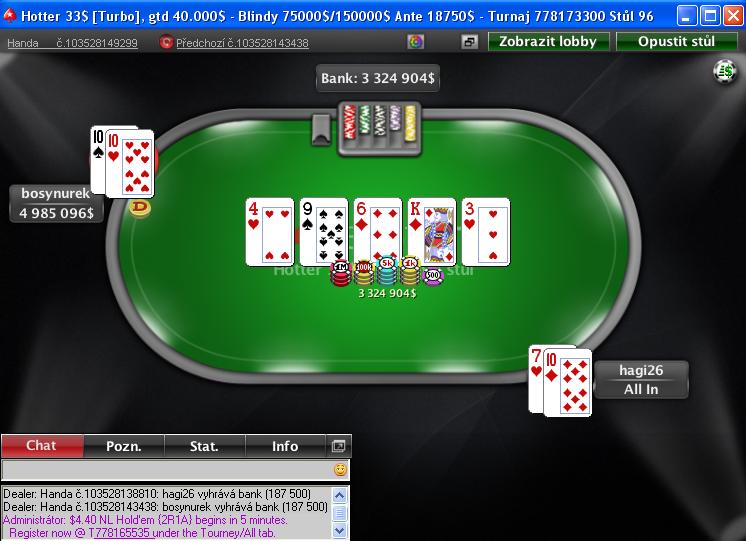 Aj ďalší parádny výsledok nesie prívlastok životný. Podaril sa českému hráčovi "bosynurek", ktorý dokázal vyhrať Hotter $33 a odniesol si doposiaľ svoju najvyššiu výhru z herne P****Stars $9,297.
