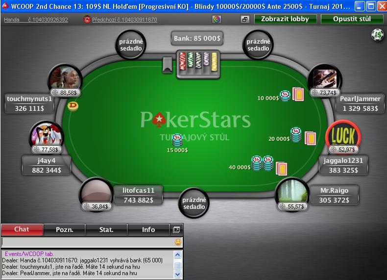Skvelý výsledok dosiahol počas včerajšieho večera český hráč Artur "jaggalo1231" Rudziankov, ktorý sa dostal na finálový stôl turnaja WCOOP-13: $215 NLHE Progressive KO. Jednalo sa už o tretí finálový stôl pre českých hráčov počas WCOOP 2013. Bohužiaľ to dopadlo úplne rovnako ako v predošlých prípadoch a "jaggalo1231" sa musel z FT rozlúčiť medzi prvými. Tentokrát však český hráč vypadol po poriadnej smole, keď trafil na flope set. Celé to začalo keď poslal 3bet all-in 300K s J
