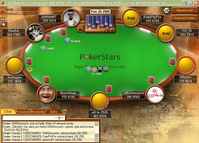 Počas prvých dvoch dní nového týždňa sa Sk/Cz v online MTT turnajoch podarilo hneď viacero skvelých výsledkov. O ten najlepší sa len pred pár minútami postaral najúspešnejší a mediálne najznámejší český hráč pokru Martin "filfedra" Staszko. V najväčšom garante počas pracovného týždňa v herni P****Stars $1,050 Super Tuesday sa dokázal prebojovať až na finálový stôl. Tam "filfedra" vstupoval s najnižším stackom a dlho to vyzeralo, že celý stôl čaká kým nevypadne práve český hráč. Všetko to však zmenila jedna hra, v ktorej sa do preflop all-nu dostali hneď štartia hráči a v pote bolo zrazu takmer polovica všetkých chipov v hre. Práve v tejto hra sa s turnajom rozlúčili hneď dvaja hráči a "filfedra" sa bez toho, aby zahral čo i len jednu handu na finálovom stole, dostal už do TOP 7. (Hru si môžete pozrieť v screene pod textom.)