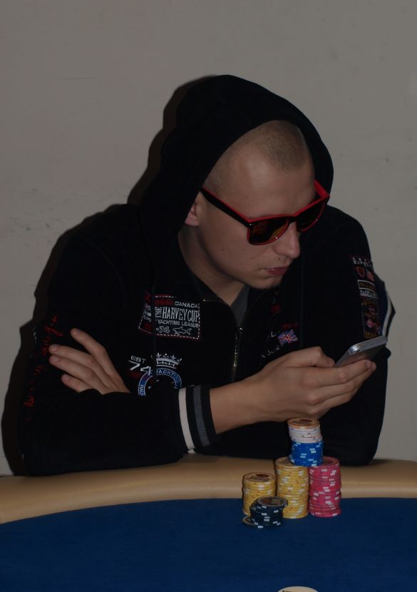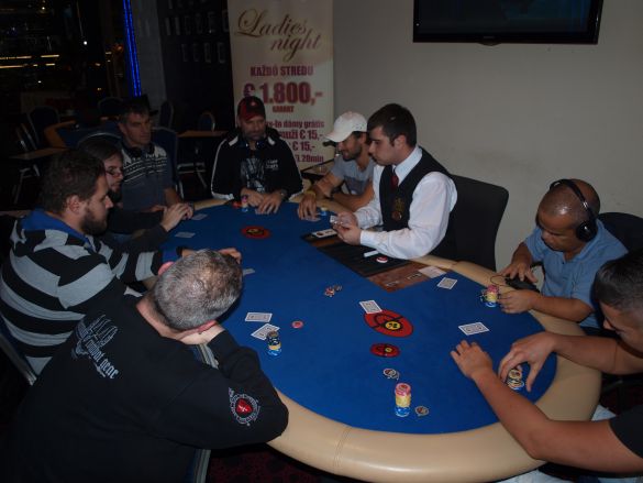 Zlú chvíľu na all-iny si vybral Vlado Fabok. Najprv z BB dorovnával 20,000cový AI s K-Q a keď súper trafil set pätiek na flope, prišiel Fabok o prvú časť stacku. Následne poslal AI so 7