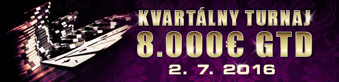 Aj tento turnaj je zahrnutý do bodovania o kvartálny bank. Kvartálny turnaj pre 50 najlepších hráčov zo všetkých partnerských klubov je naplánovaný na 02. 07. 2016. Chillout Weekend môže víťazovi priniesť peknú porciu bodov do rebríčka a zaistiť tak postup do freerollu o 8.000€.