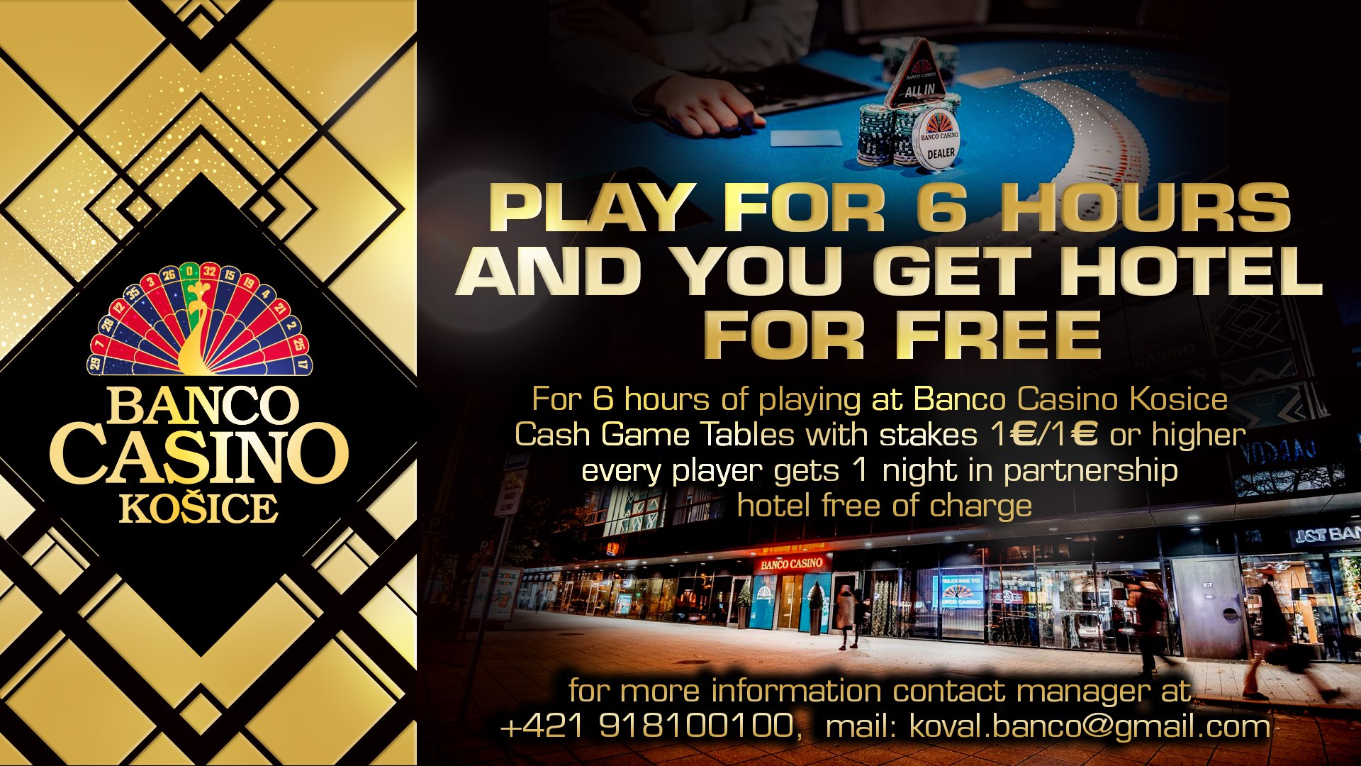 Dostávajte najnovšie informácie o PROMO akciách a dianí v Banco Casino Košice: