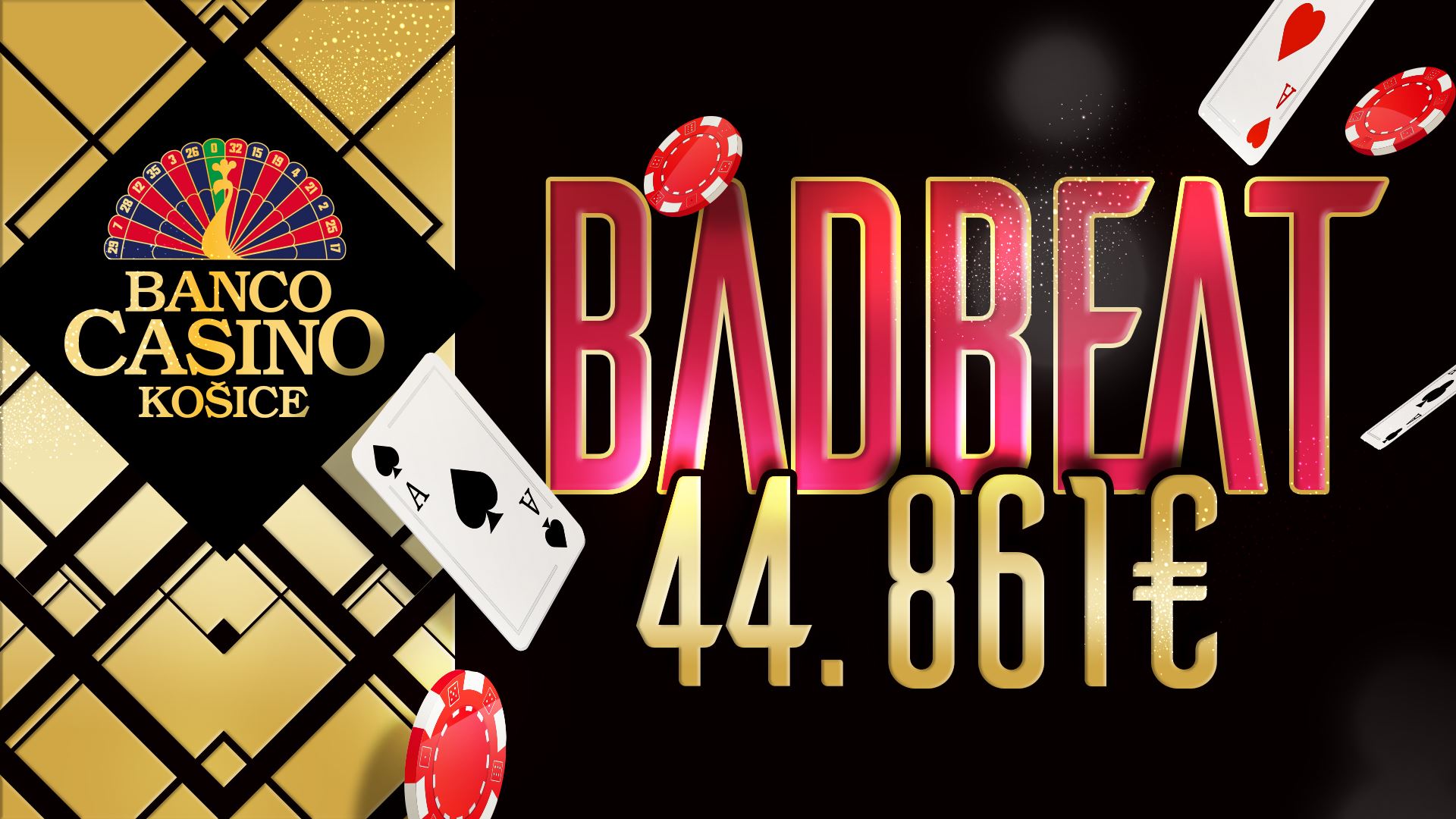 Banco Casino myslí aj na CASH GAME hráčov. Každý mesiac v Banco Casino Košice garantujú cashovkárom 10,000€ v cash back bonusoch, Podľa počtu odohratých hodín si hráči každý mesiac podelia pekný balík peňazí,No a pokiaľ za stolom strávite počas jedného dňa aspoň 6 hodín, nemusíte chodiť ďaleko – noc v partnerskom hoteli máte totiž zadarmo.Bad Beat Jackpot 44,861€ jednoznačne najväčším jackpotom na Slovensku. Na to aby ste ho získali potrebujete dávku šťastia, čo ku kartám samozrejme patrí, no ak máte radi istotu, tak by ste nemali prepásť každomesačnú šancu získať Cash Back z prizepoolu 10,000€. Čo nato? Stačí len hrať v Banco Casino Košice cash game, „zbierať“ hodiny a odniesť si čo najväčší podiel z prizepoolu. Jednoduché, však?