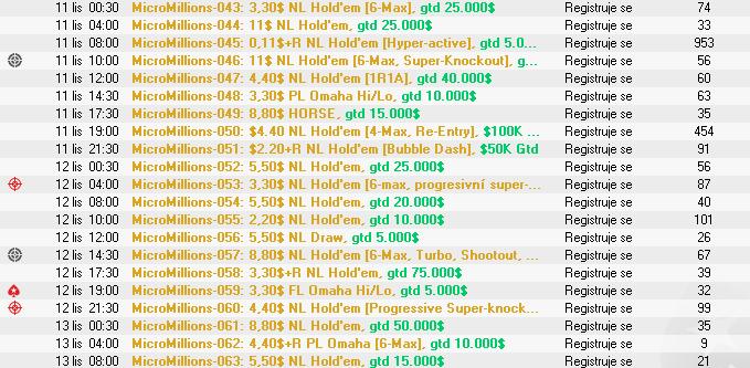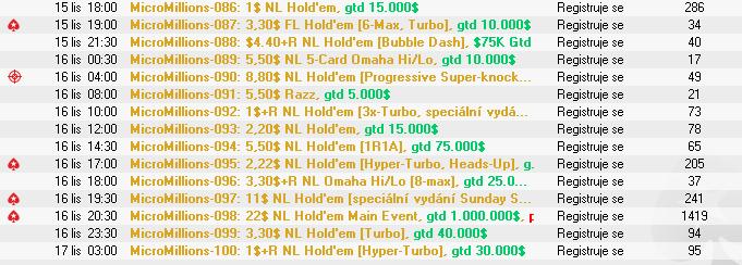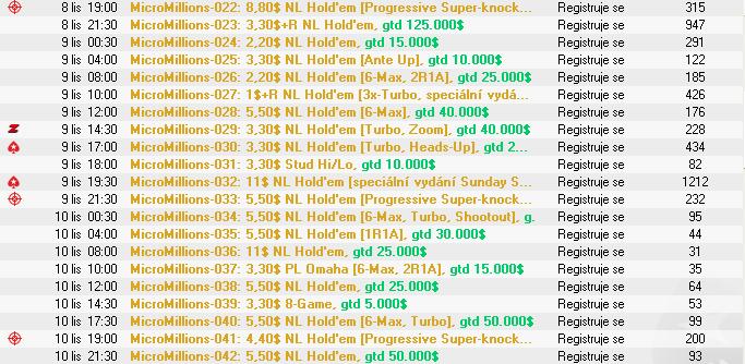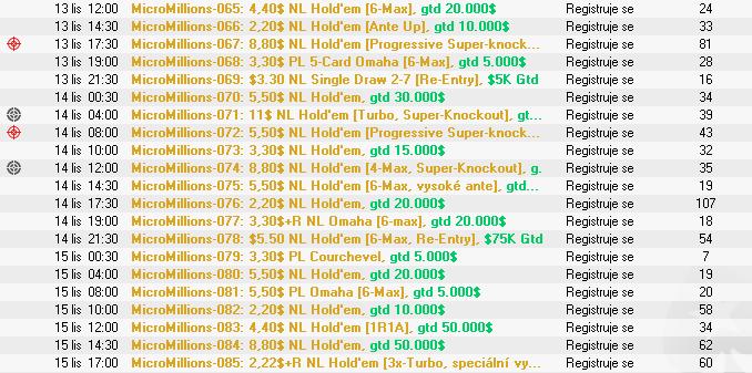 Dnes večer sa v herni P****Stars začína obľúbená online séria MicroMillions s garanciou $5,000,000. Na hráčov čaká 100 turnajov s buy-inmi od $0,10 až po $22 Main Event. Séria bude prebiehaťž 10 dní a konči v nedeľu 16. novembra. Turnaje sú vypísané v diskusii.