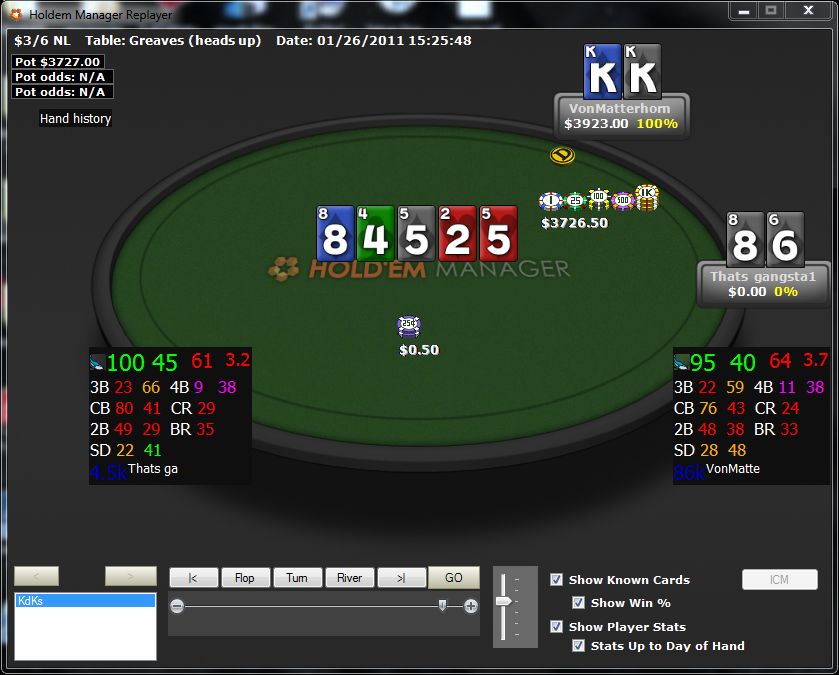 . Prepacte ked to znie ako prilisne chvalenie... A ten roll som naozaj bustol minimalne 4 co si pamatam, ked hras 4 stoly v hyperagresivnom matchi tak 20, dokonca az 30 bi swing nie je vynimkou. Samozrejme to nebolo za 1 den, vzdy sme sa dohodli ze na dalsi si dame rematch, takto som zobral roll 2 regularom na 1/2. Moj najlepsi den bol +8471usd a to na 1/2 az 2/4. Postnem este aj nejake zaujimave ruky... Tolko k tomu.