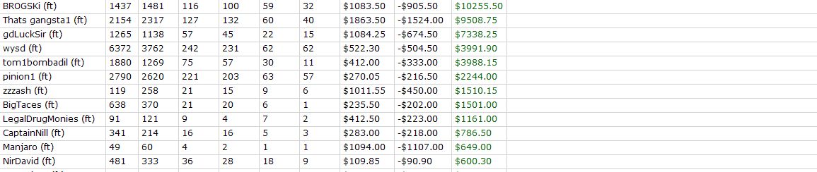 . Prepacte ked to znie ako prilisne chvalenie... A ten roll som naozaj bustol minimalne 4 co si pamatam, ked hras 4 stoly v hyperagresivnom matchi tak 20, dokonca az 30 bi swing nie je vynimkou. Samozrejme to nebolo za 1 den, vzdy sme sa dohodli ze na dalsi si dame rematch, takto som zobral roll 2 regularom na 1/2. Moj najlepsi den bol +8471usd a to na 1/2 az 2/4. Postnem este aj nejake zaujimave ruky... Tolko k tomu.- Prílohy
