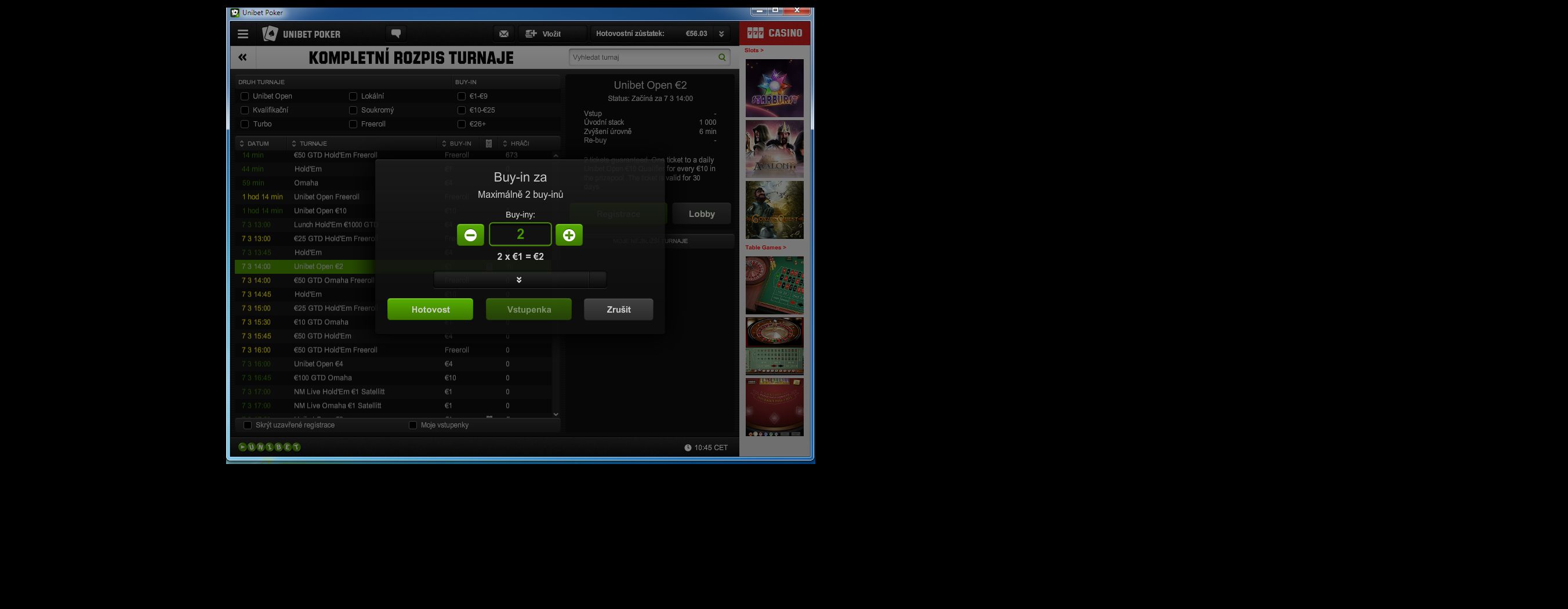 No je to na UNOBETOPEN a ked ho vysvietim a mi pod nim neukaze ziadne turnaje aj ked je platny este vela dni, ten vacsi, tie 2€ mi uz aj prepadli tusim 2